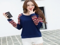 秋裝新款拼接長袖T恤韓版休閑套頭寬松衛(wèi)衣大碼顯瘦上衣潮 /