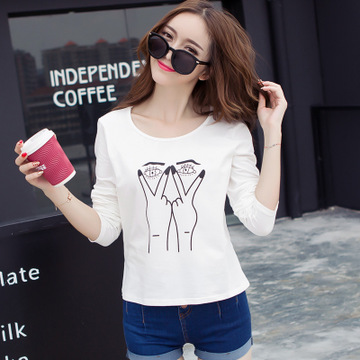 年秋裝新品韓版長袖印花T恤女 圓領(lǐng)直筒百搭T恤 /