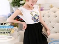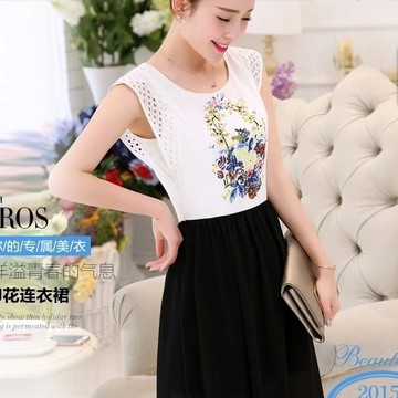 669# 連衣裙長裙 夏季韓版時尚印花連衣裙雪紡修身無袖夏裙 /