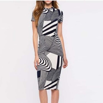 現(xiàn)貨ebay速賣通秋季爆款不規(guī)則印花復古顯瘦短袖包臀連衣裙 /