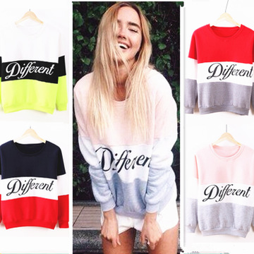 Wish速賣通秋季女士新款外貿(mào)拼色字母圓領(lǐng)長(zhǎng)袖套頭抓絨衛(wèi)衣 /