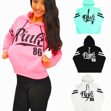 ebay春秋裝速賣通爆款新款pink印花連帽寬松休閑衛(wèi)衣 /