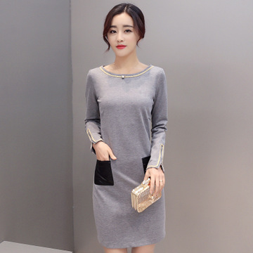 秋裝韓版新款打底衫女裝簡約氣質(zhì)修身寬松時尚七分袖連衣裙 /