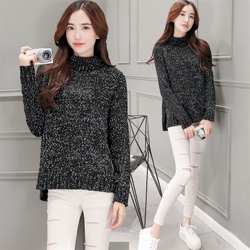 秋季新品長(zhǎng)袖寬松高領(lǐng)毛衣套頭針織衫打底衫前短后長(zhǎng)學(xué)院系列 /