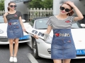 韓版春夏修身顯瘦中長款純棉條紋短袖拼接時尚牛仔連衣裙秋 /