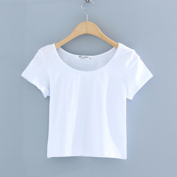 露臍短袖t恤女夏短款修身韓版純棉短袖半袖純色上衣體恤廠家批發(fā) /
