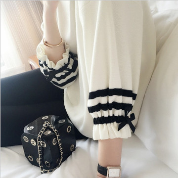 春夏新款 手臂蝴蝶結(jié)女人味冰絲冰麻針織燈籠袖圓領(lǐng)針織衫女 /