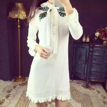 歐洲站春季新款 名媛風(fēng)刺繡釘珠荷葉邊中長款襯衫連衣裙潮 /