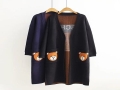 秋冬女裝韓版寬松百搭小熊圖案雙口袋超長(zhǎng)加厚毛衣開衫外套女 /