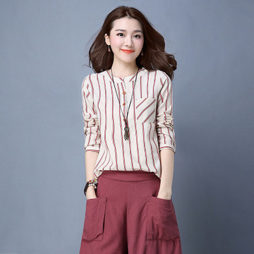 秋季新品女裝韓版時(shí)尚修身?xiàng)l紋全棉襯衣襯衫女大量現(xiàn)貨批發(fā) /