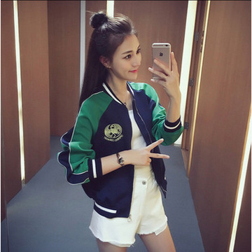 秋季新款韓版長袖短外套女立領(lǐng)上衣初秋拼色刺繡棒球服外套薄 /