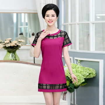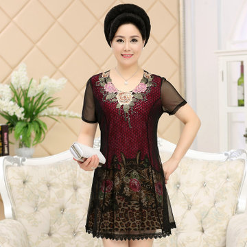 新款夏裝中老年女裝連衣裙 大碼網紗蕾絲裙中年媽媽裝連衣裙 /