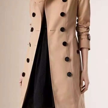 年早秋專柜最新款水溶蕾絲雙層領(lǐng)嘎巴甸棉中長(zhǎng)款防水風(fēng)衣外套女 /