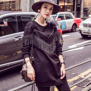 實(shí)拍 新款寬松中長款韓版百搭流蘇長袖衛(wèi)衣連衣裙女套頭潮 78 /