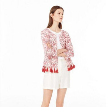 • 年秋季歐美時尚數(shù)碼印花柳樹花邊七分袖外套女 /