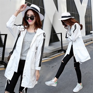 春秋新款西裝外套中長款連帽開衫風衣女潮 /