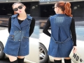 牛仔馬甲女秋冬新款大碼韓版雙排扣口袋馬甲時(shí)尚中長款外套 /