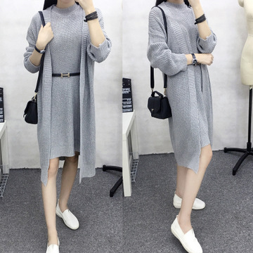 秋裝針織衫套裝女新款開衫毛衣中長款外套 /