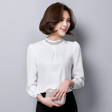 雪紡衫女長(zhǎng)袖秋裝新款韓版釘珠打底衫 /
