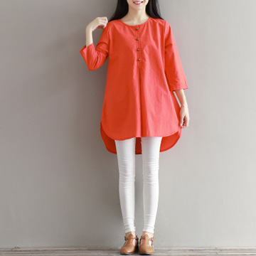 秋季新款森女系九分袖中長款純色文藝寬松圓領女裝上衣 /