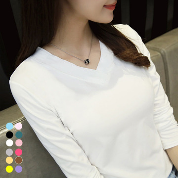 秋裝新款韓版打底衫上衣寬松顯瘦時尚百搭純色學生長袖t恤女 /