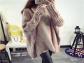 一件代發(fā) 秋冬新款歐美圓領(lǐng)蝙蝠長袖寬松針織衫中長款套頭毛衣女 /