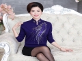 時(shí)尚中國風(fēng)媽媽裝 精致刺繡鑲鉆立領(lǐng)長袖修身女式針織打底衫 /