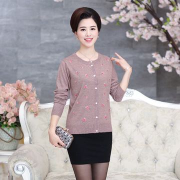 韓國東大門新款潮流中老年媽媽裝精品時(shí)尚刺繡花案打底針織衫 /