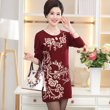 中老年女裝秋裝上衣中年婦女打底衫媽媽裝中長款長袖針織衫大碼 /