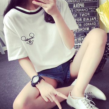 韓國寬松半截短袖t恤女夏 學(xué)生半袖上裝百搭大碼原宿體恤卡通衣服 /