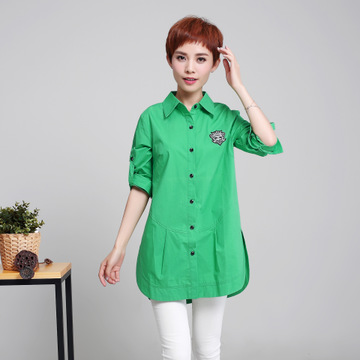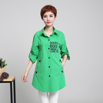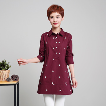 秋季新款大碼女裝休閑襯衫中長款純棉長袖中年女裝 /