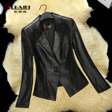 歌栢妮冬韓版機(jī)車真皮皮衣女短款修身小西裝綿羊皮外套夾克 /