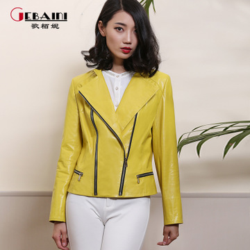 歌栢妮新款真皮皮衣女短款綿羊皮機(jī)車修身翻領(lǐng)皮夾克外套女裝 /