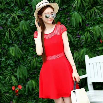 新款氣質l歐根紗拼接雪紡連衣裙女公主裙A字裙蓬蓬裙一件代發(fā) /