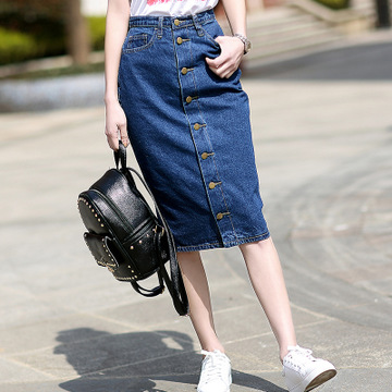 韓國夏新款中長款性感學生牛仔半身裙女百搭包臀一件代發(fā) /