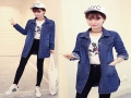 實(shí)拍秋裝新款牛仔外套女中長款修身外套長袖印花牛仔上衣 /