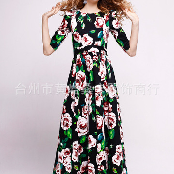 速賣通ebay歐美新款 波西米亞玫瑰民族印花連衣裙熱賣爆款 /