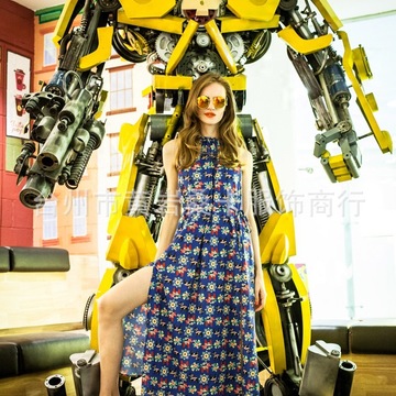 速賣通ebay歐美新款 大黃蜂碎花側(cè)開叉修身顯瘦連衣裙熱賣爆款 /