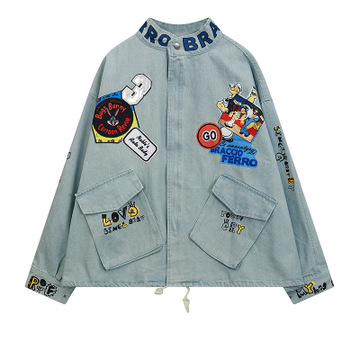 秋季新款原宿風(fēng)牛仔卡通刺繡寬松長(zhǎng)袖外套牛仔上衣WT655 /