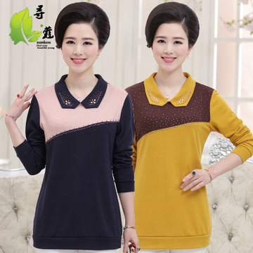 中老年春款媽媽裝30-40歲長袖方領(lǐng)T恤衫中長款打底衫一件代發(fā) /