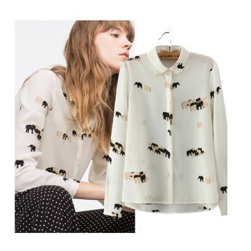 早春女裝新款 雪紡全身大象印花翻領(lǐng)長(zhǎng)袖襯衫 女 /