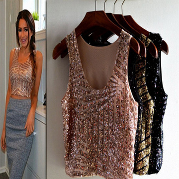 爆款 歐美條紋亮片拼接性感背心短款上衣外貿(mào)原單廠家 /