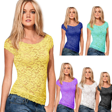夏新女裝 熱賣歐美風雙層蕾絲低領(lǐng)蕾絲衫上衣 女T恤廠家 /