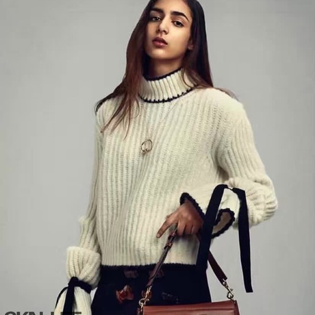 • 秋冬羊毛馬海毛安德森又乖又溫柔蝴蝶結(jié)喇叭袖綁帶高領(lǐng)毛 /