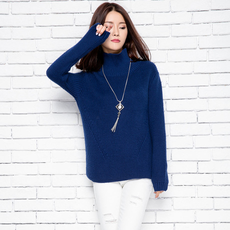 秋冬新款 立領(lǐng)羊毛衫短款純色針織衫寬松大碼加厚毛衣套頭女 /