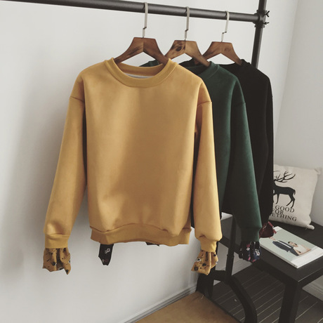 梵伊服飾 韓國(guó)訂單 袖口拼接小碎花寬松圓領(lǐng)套頭衛(wèi)衣女 /