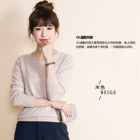 秋冬新款女圓領(lǐng)羊絨衫100%純山羊絨彩點(diǎn)打底衫點(diǎn)子紗套頭毛衣 /