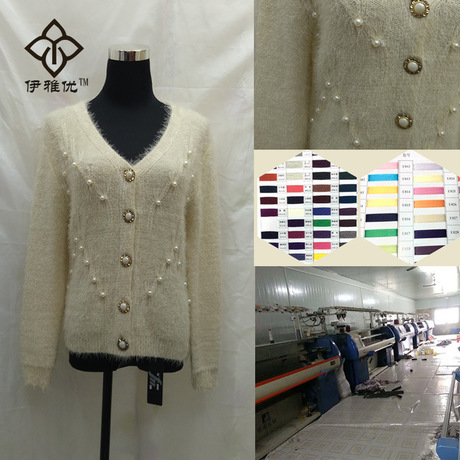 毛織開衫手工釘珠外套優(yōu)質(zhì)馬海毛毛衣加工定制 /