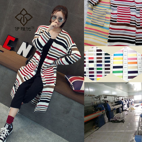 韓版長(zhǎng)款條紋開衫外套毛衣加工定制 /