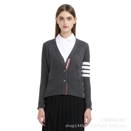 秋冬新款v領(lǐng)針織衫 四道杠條紋外套 毛衣開衫針織衫 男女同款 /